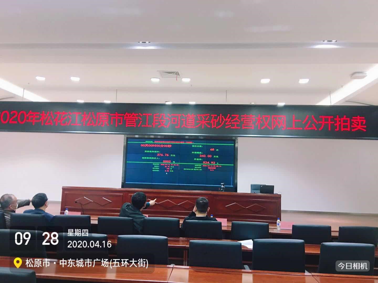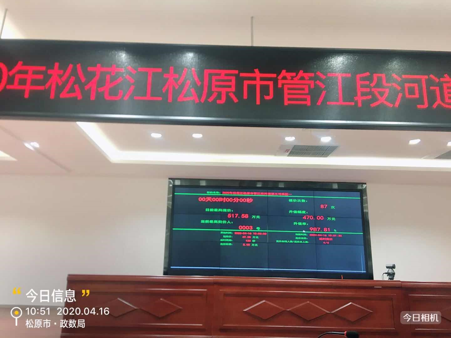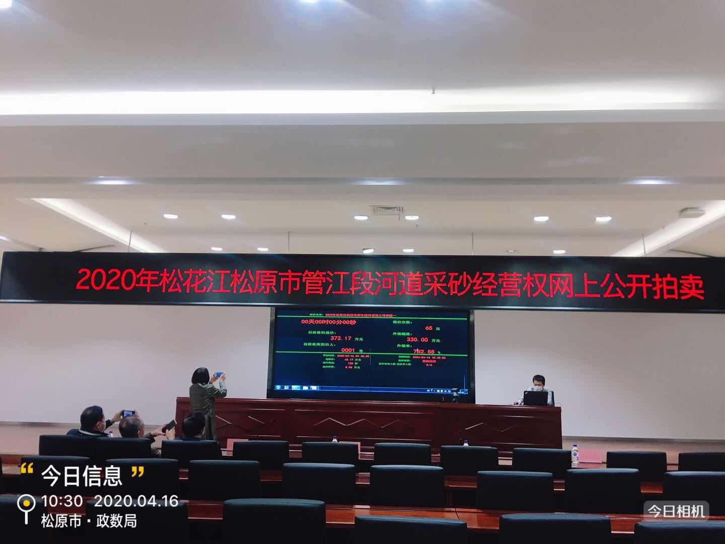 4月16日上午9时,松原市首例松花江松原市管河道采砂经营权项目网上公开拍卖活动在市公共资源交易中心交易平台举行。该项目分三个标段起拍,起拍价共126.51万元,经过17家企业竞拍220次,共拍得价款1266.51万元,溢价1140万元,转让期限为1年。