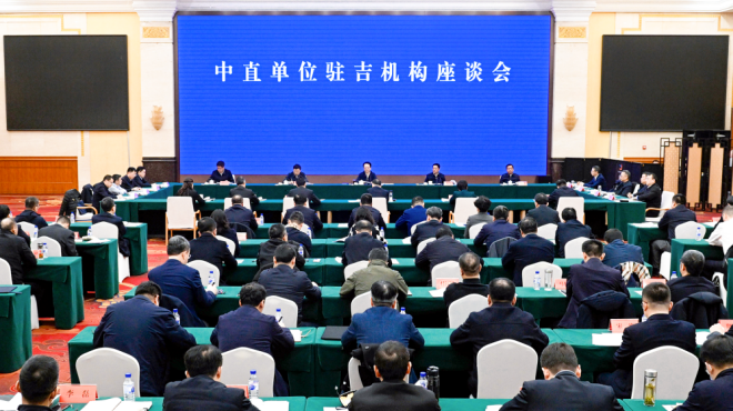 3月28日,中直单位驻吉机构座谈会在长春召开。省委书记景俊海出席座谈会并讲话。他强调,要深入贯彻习近平总书记在新时代推动东北全面振兴座谈会上的重要讲话精神,进一步加强全省各地各部门与中直单位驻吉机构对接交流,共同谱写协同联动、创新合作新篇章,携手推动吉林高质量发展、可持续振兴。省委副书记、省长胡玉亭主持座谈会并讲话。