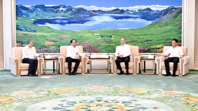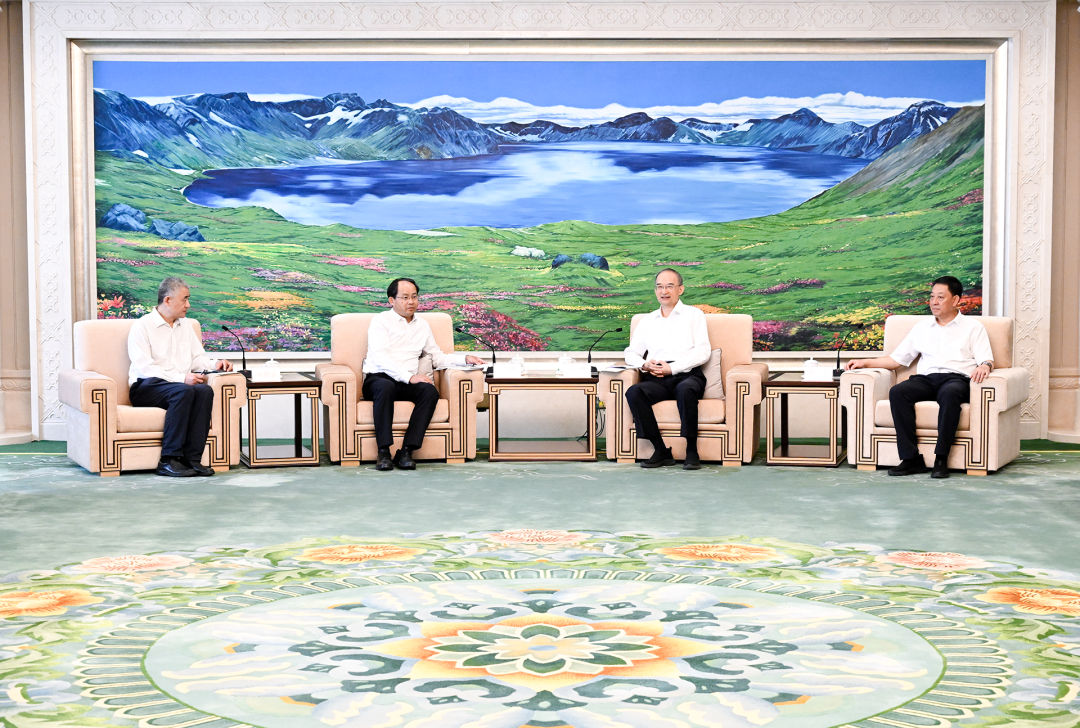 9月11日,省委书记黄强,省委副书记、省长胡玉亭在长春会见工业和信息化部党组成员、副部长,国家国防科技工业局党组书记、局长单忠德一行。张野 摄