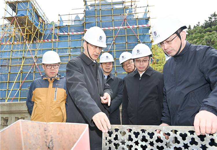 黄强首先来到日本关东军司令官官邸旧址,仔细检查木质梁柱修复情况,强调要深入研究破损部位,既看到“病灶”、也找到“病根”,真正做到标本兼治、有效修复。他叮嘱施工人员务必严禁烟火,确保工程项目绝对安全。黄强强调,日本关东军司令官官邸旧址是极具价值的历史建筑,省委高度重视修缮保护工作。有关方面要严格项目管理,坚持“修一次管一百年”标准,做好木结构防火防腐防虫,努力打造廉洁工程、精品工程,为全省历史建筑修缮恢复树立标杆典范。要坚持周计划、日安排,以并行模式推进施工,切实把责任落实到人。相关干部要大力弘扬“严细实”作风,脚踏实地、真抓实干,多到现场看看、多到工地转转,保证工程进度质量。