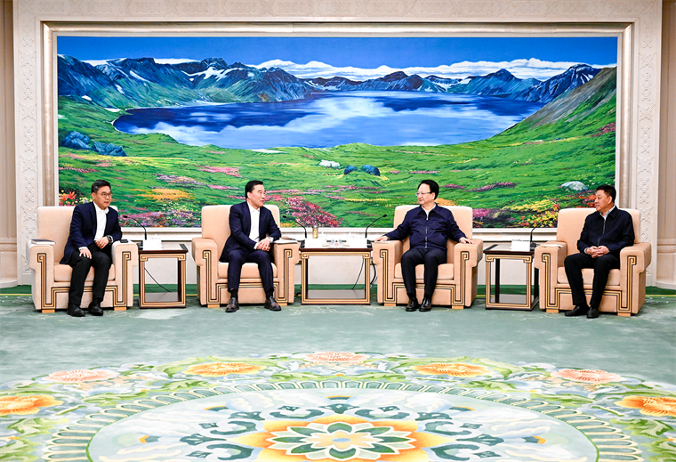 3月28日,省委书记景俊海,省委副书记、省长胡玉亭在长春会见广东明阳新能源投资控股集团党委书记、董事长张传卫一行。张野 邹乃硕 摄