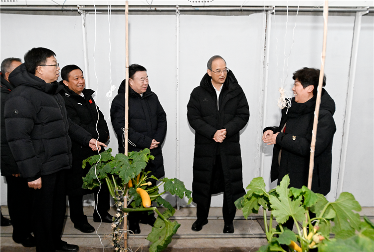 12月18日,省委书记黄强在长春公主岭市调研,在恒通生态农业科技开发公司察看了解花卉果蔬生产销售情况。张野 摄