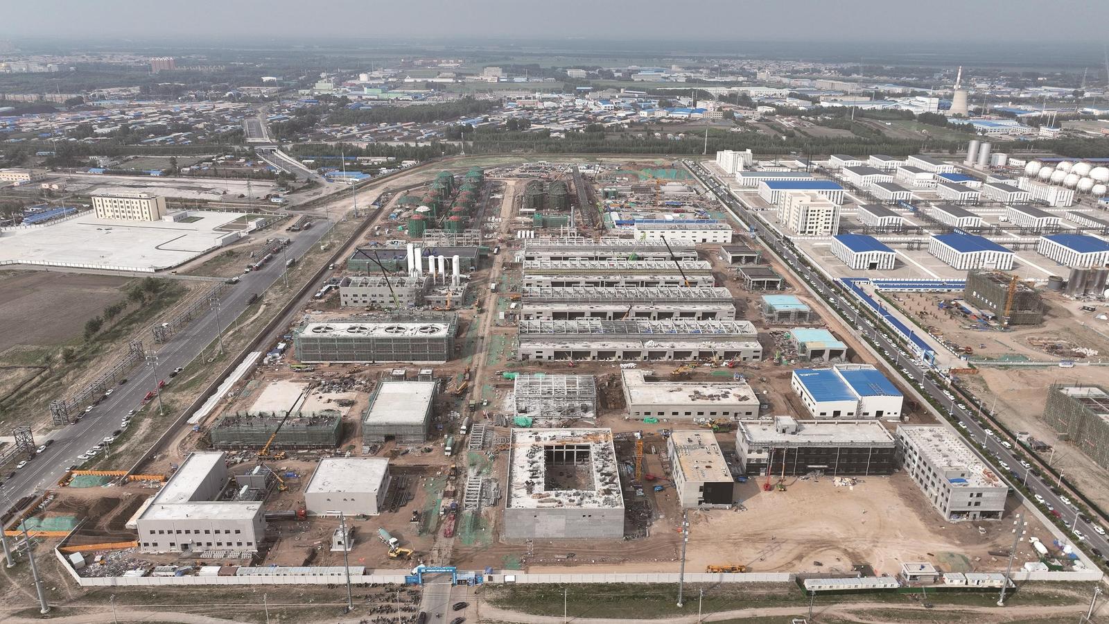 中能建松原氢能产业园(绿色氢氨醇一体化)项目建设现场。 王学雷 摄