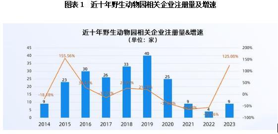 我国现存野生动物园相关企业211家。近十年其注册量呈上下波动态势。2019年野生动物园相关企业注册量40家,为近十年注册量最高峰值。去年注册量喜人,同比增长125.00%至9家。