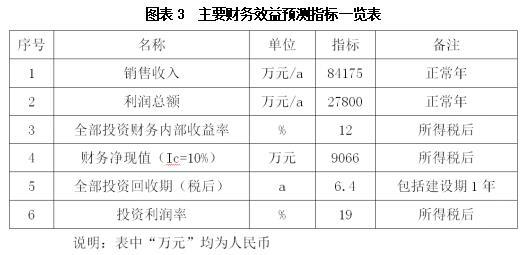 项目建成后,年销售收入84,175万元,利润27,800万元,投资回收期6.4年(税后,含建设期1年),投资利润率19%。