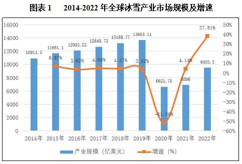2014年至2019年,全球冰雪产业市场规模逐年增长。2019年全球冰雪产业市场规模为13653.11亿美元,受新冠肺炎疫情影响,2020年冰雪产业规模下降至6621.75亿美元。疫情在2022年后有所好转,全球冰雪产业规模反弹。