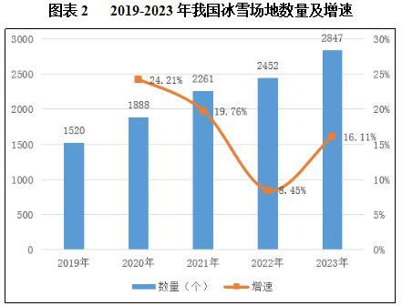 后冬奥时代,随着冰雪运动的不断普及与深入,各地冰雪运动场地设施建设步伐不断加快,滑冰场馆和滑雪场馆数量持续增长。2023年全国冰雪运动场地数量达到2847个,较上年度增长16.11%。