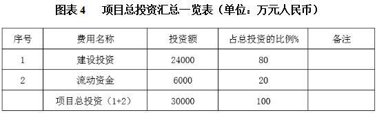 项目总投资为30000万元,其中建设投资24000万元,流动资金6000万元。