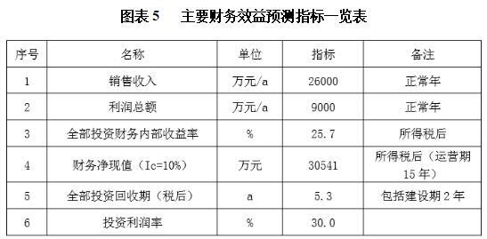 项目建成后,年销售收入26000万元,利润9000万元,投资回收期5.3年(税后,含建设期2年),投资利润率30.0%。