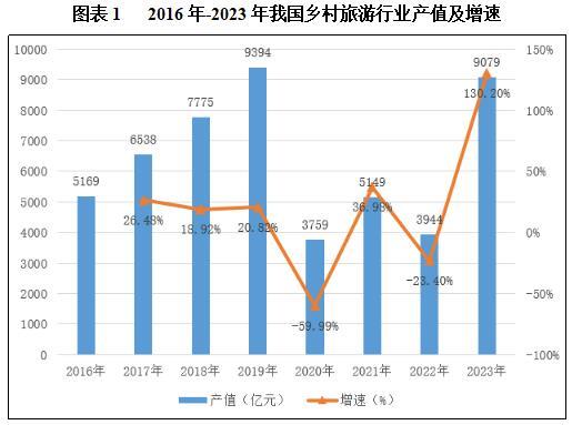 数据显示,截至目前文化和旅游部分批公布的全国乡村旅游重点村共计已有1500个左右、全国乡村旅游重点镇(乡)共计已有200个以上。近年来,随着人们生活水平的提高和消费观念的转变,越来越多的游客开始选择前往乡村地区,体验不同于城市的自然风光、文化习俗和乡村生活,我国乡村旅游市场规模呈现持续扩大态势,已成为国内旅游市场的新热点,其产业链条不断延展、综合带动作用日渐显著,逐渐形成了一大批乡村旅游重点村镇、精品线路、集聚区域,成为乡村振兴的重要抓手。据统计,2023年全国乡村旅游产值已从2016年的5169亿元增长至9079亿元以上。