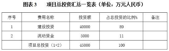 项目总投资为45000万元,其中建设投资40000万元,流动资金5000万元。