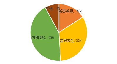 温泉旅游已经成为游客休闲放松的重要选择,相关数据显示,超过43%的游客选择温泉旅游的动机为休闲放松、33%的游客注重温泉养生、16%的游客选择美容养颜、8%的游客选择其他。由此可见,游客选择温泉旅游最主要的目的是休闲放松。且温泉有显著的医疗功效,其医疗功效来自温泉的温度、压力、浮力等物理作用,以及它富含的矿物质和化学成分,不同的化学成分带来不同的医疗保健效用。因此,健康疗养一直是温泉开发的重要用途之一。随着养生度假、康疗保健等需求的日渐增加,温泉旅游作为一种体验性的活动。