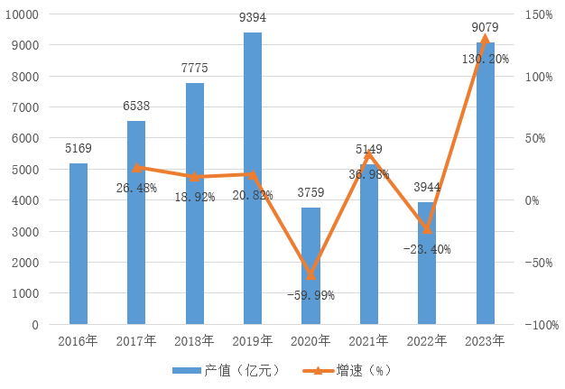 图表1 2016年-2023年我国乡村旅游行业产值及增速