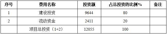 本项目总投资12055万元,其中:建设投资9644万元,流动资金2411万元。
