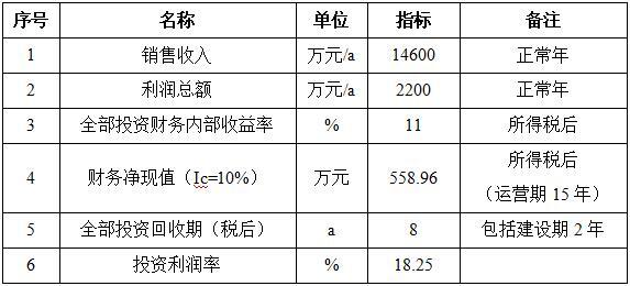 项目达产后,年销售收入14600万元,利润2200万元,投资回收期8年(税后,含建设期2年),投资利润率18.25%。