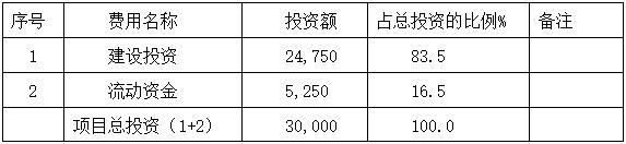 项目总投资30,000万元,其中固定资产投资24,750万元。