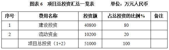 本项目总投资为51000万元,其中:建设投资40800万元,流动资金10200万元。