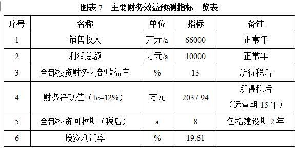 项目达产后,年销售收入66000万元,利润10000万元,投资回收期8年(税后,含建设期2年),投资利润率19.61%。