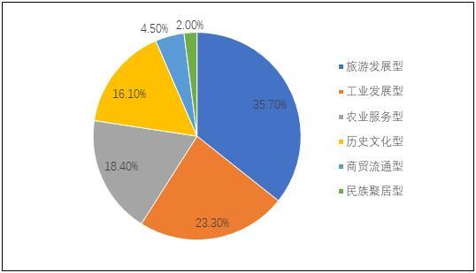 从类型分布看,国家级特色小镇多为旅游发展型,占比达35.7%;其次是工业发展型和农业服务型,分别占比23.3%、18.4%。历史文化型、商贸流通型、民族聚居型分别占比16.1%、4.5%、2%。