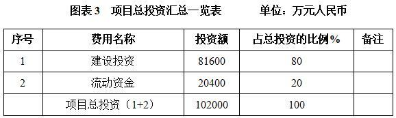 本项目总投资为102000万元,其中:建设投资81600万元,流动资金20400万元。