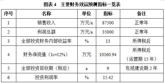 项目达产后,年销售收入87500万元,利润35000万元,投资回收期9年(税后,含建设期2年),投资利润率15.42%。