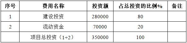 本项目总投资为350000万元,其中:建设投资280000万元,流动资金70000万元。