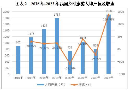 乡村旅游发展是以农业为依托,以农村为空间,以农民为主体、以城市居民消费为市场,既扎根于“三农”,又对接城市需求和现代消费,对农村经济发展、城镇化进程、城乡统筹发展,都有着十分重要的意义。据统计,党的十八大以来,全国乡村旅游人次从近8亿跃升到30亿以上,年均增速超过20%。乡村旅游已成长为近万亿级收入规模的新兴产业,大幅提升了农村居民收入。据统计,2023年我国农民人均旅游产值达到1903元,同比增加1100元,较2021年增加870元。