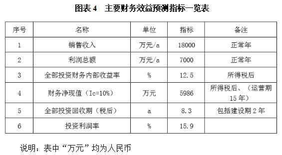 项目建成后,预计年销售收入18000万元,年利润7000万元,投资回收期8.3年(税后,含建设期2年),投资利润率15.9%。