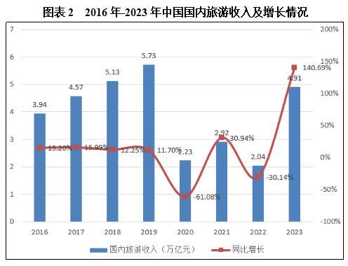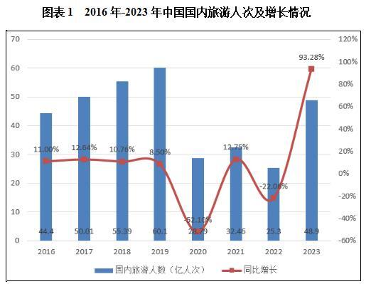 2023年是旅游行业强势复苏的一年,被压抑三年的出游需求得以释放,旅游逐步成为人们的一种生活方式,掀起国民出游新热潮。根据国家统计局发布的《中华人民共和国2023年国民经济和社会发展统计公报》显示,2023年全年国内出游48.9亿人次,比上年增长93.3%。其中,城镇居民国内出游37.6亿人次,增长94.9%;农村居民国内出游11.3亿人次,增长88.5%。入境游客8203万人次,其中外国人1378万人次,香港、澳门和台湾同胞6824万人次。国内居民出境10096万人次,其中因私出境9684万人次,赴港澳台出境7704万人次。