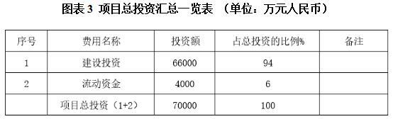 项目总投资7亿元,其中建设投资6.6亿元,流动资金0.4亿元。