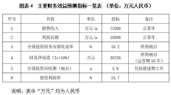 项目建成后,预计年销售收入75000万元,年利润18000万元,投资回收期5.9年(税后,含建设期2年),投资利润率25.7%。