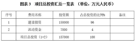 项目总投资15.7亿元,其中建设投资15亿元,流动资金0.7亿元。