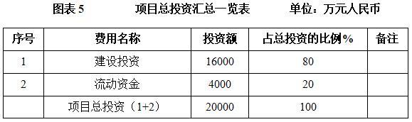 本项目总投资为20000万元,其中:建设投资16000万元,流动资金4000万元。