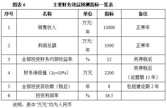项目达产后,年销售收入13000万元,利润3300万元,投资回收期8年(税后,含建设期2年),投资利润率16.5%。