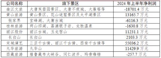 旺盛的客流并未必然转化为强劲的现金流。一些上市景区公司的半年财报显示,尽管游客数量增加,但部分景区仍面临盈利压力。例如,九华旅游净利润达1.1亿元,丰富多样的活动如夜游非遗展演、百场黄梅唱响百家景区、国风花朝节等为九华山带来了相对乐观的财务表现;然而拥有大唐芙蓉园景区、大唐不夜城、西安城墙等网红打卡景区的曲江文旅,却亏损高达1.87亿元,净利润由盈转亏;张家界在2024年上半年净利润为-6116.3万元,同比减少49.13%。