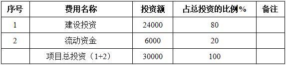 本项目总投资为30000万元,其中:建设投资24000万元,流动资金6000万元。