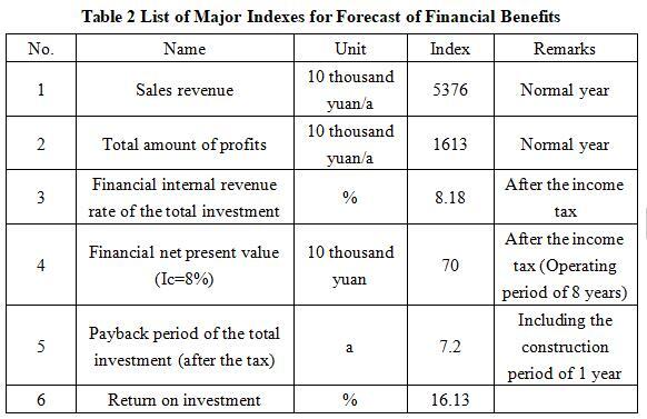 After the project reaches the production capacity, its annual sales revenue will be 53.76 million yuan, its profit will be 16.13 million yuan, its investment payback period will be 7.2 years (after the tax, including the construction period of 1 year) and its return on investment will be 16.13%.