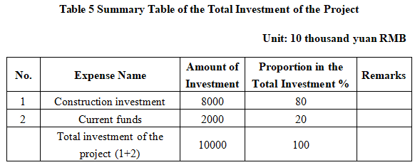 The total investment of this project is 100 million yuan, including: construction investment of 80 million yuan and current funds of 20 million yuan.