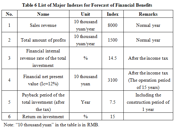 After the project reaches the production capacity, its annual sales income will be 80 million yuan, its profit will be 15 million yuan, its investment payback period will be 7.5 years (after the tax, including the construction period of 1 year) and its investment profit rate will be 15%.