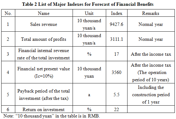 After the project reaches the production capacity, its annual sales income will be 94.276 million yuan, its profit will be 31.111 million yuan, its investment payback period will be 5.5 years (after the tax, including the construction period of 1 year) and its investment profit rate will be 22%.