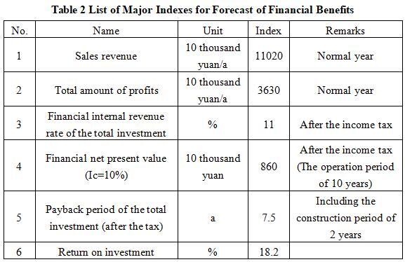 After the project reaches the production capacity, its annual sales income will be 110.2 million yuan, its profit will be 36.3 million yuan, its investment payback period will be 7.5 years (after the tax, including the construction period of 2 years) and its investment profit rate will be 18.2%.