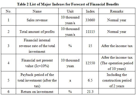 After the project reaches the production capacity, its annual sales income will be 336.6 million yuan, its profit will be 111.15 million yuan, its investment payback period will be 6.5 years (after the tax, including the construction period of 2 years) and its investment profit rate will be 21.3%.