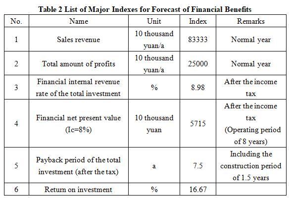 After the project reaches the production capacity, its annual sales revenue will be 833.33 million yuan, its profit will be 250 million yuan, its investment payback period will be 7.5 years (after the tax, including the construction period of 1.5 years) and its return on investment will be 16.67%.