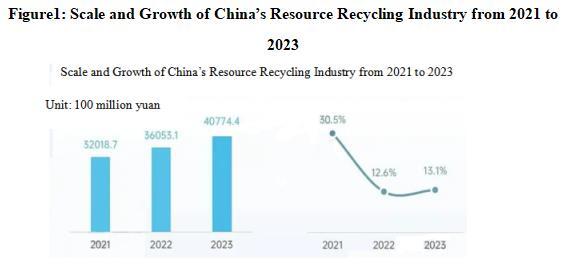 China’s development of the resource recycling industry can, on the one hand, convert waste or low value resources into renewable resources, achieve resource recycling, reduce environmental damage caused by economic development, and promote high-quality economic development. On the other hand, building a resource recycling industry system and a waste material recycling system can ensure national resource security. Under the influence of multiple factors such as environmental protection, economic development, and resource security, China’s resource recycling industry has achieved healthy and steady development. In 2023, the industry scale reached 4077.44 billion yuan, a year-on-year increase of 13.1%.