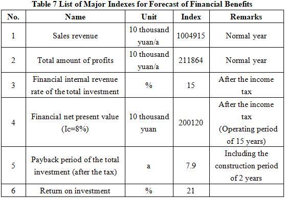 After the project reaches the production capacity, its annual sales revenue will be 10.04915 billion yuan, its profit will be 2.11864 billion yuan, its investment payback period will be 7.9 years (after the tax, including the construction period of 2 years) and its return on investment will be 21%.