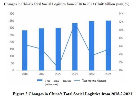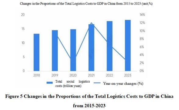 From the perspective of total logistics costs, the total logistics costs in China continue to grow. The total cost of social logistics in 2023 was 17.8 trillion yuan, a year-on-year increase of 2.3%, with a slight decline in growth rate.