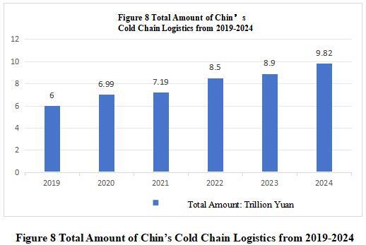 With the continuous growth of market demand, support from government policies, continuous improvement of cold chain infrastructure, and driven by technological progress and innovation, the total amount of cold chain logistics in China continues to grow. The Research and Development Prospects Analysis Report on China’s Cold Chain logistics Industry from 2024 to 2029 released by China Academy of Commerce Industry Research shows that the total amount of cold chain logistics in China reached 8.90 trillion yuan in 2023, an increase of 40 billion yuan from 2022 and a year-on-year growth of 4.6%. The total amount of cold chain logistics in China increased to 9.82 trillion yuan by 2024.
