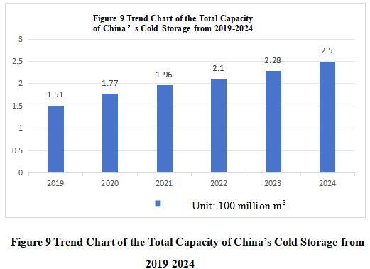 Cold storage can be regarded as the “base” of cold chain logistics. The construction and development of cold storage has become a top priority for the national backbone cold chain logistics base. The Research and Development Prospects Analysis Report on China’s Cold Chain logistics Industry from 2024 to 2029 released by China Academy of Commerce Industry Research shows that the total amount of cold storage in China was about 228 million cubic meters in 2023, an increase of 18 million cubic meters from the previous year and an increase of 8.3% year-on-year.The total capacity of cold storage in China will have reached 250 million cubic meters by 2024.