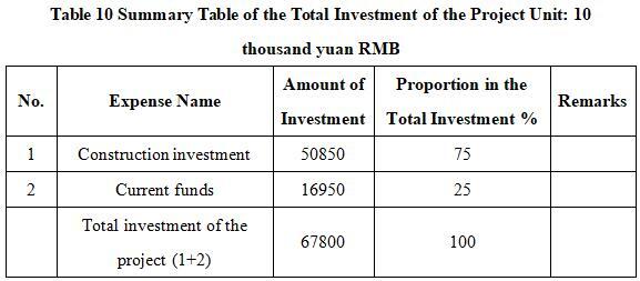 1.3 Total investment of the project and capital raising