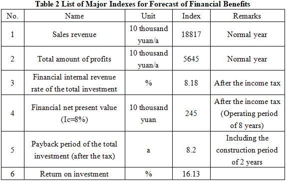 After the project reaches the production capacity, its annual sales revenue will be 188.17 million yuan, its profit will be 56.45 million yuan, its investment payback period will be 8.2 years (after the tax, including the construction period of 2 years) and its return on investment will be 16.13%.
